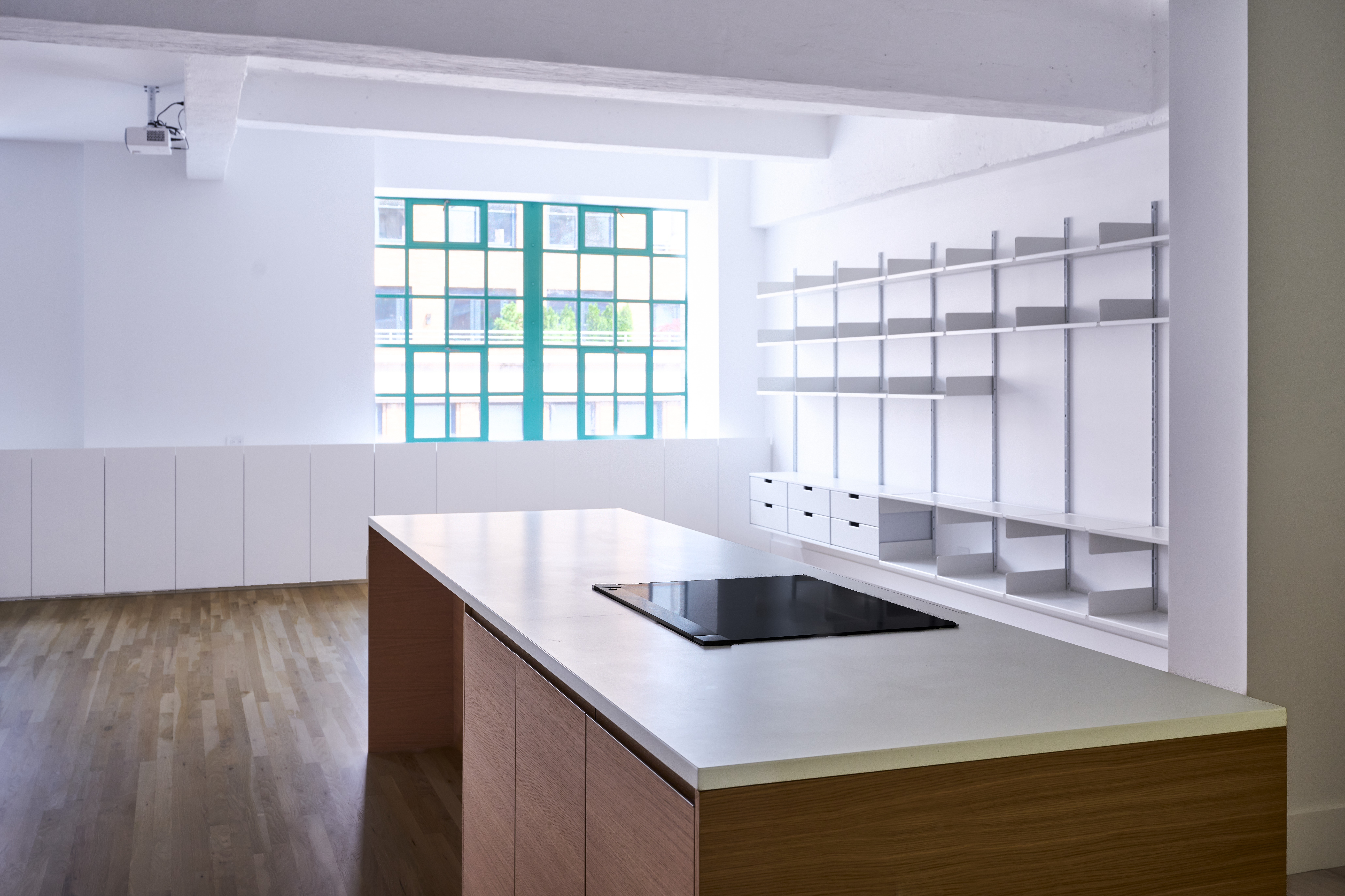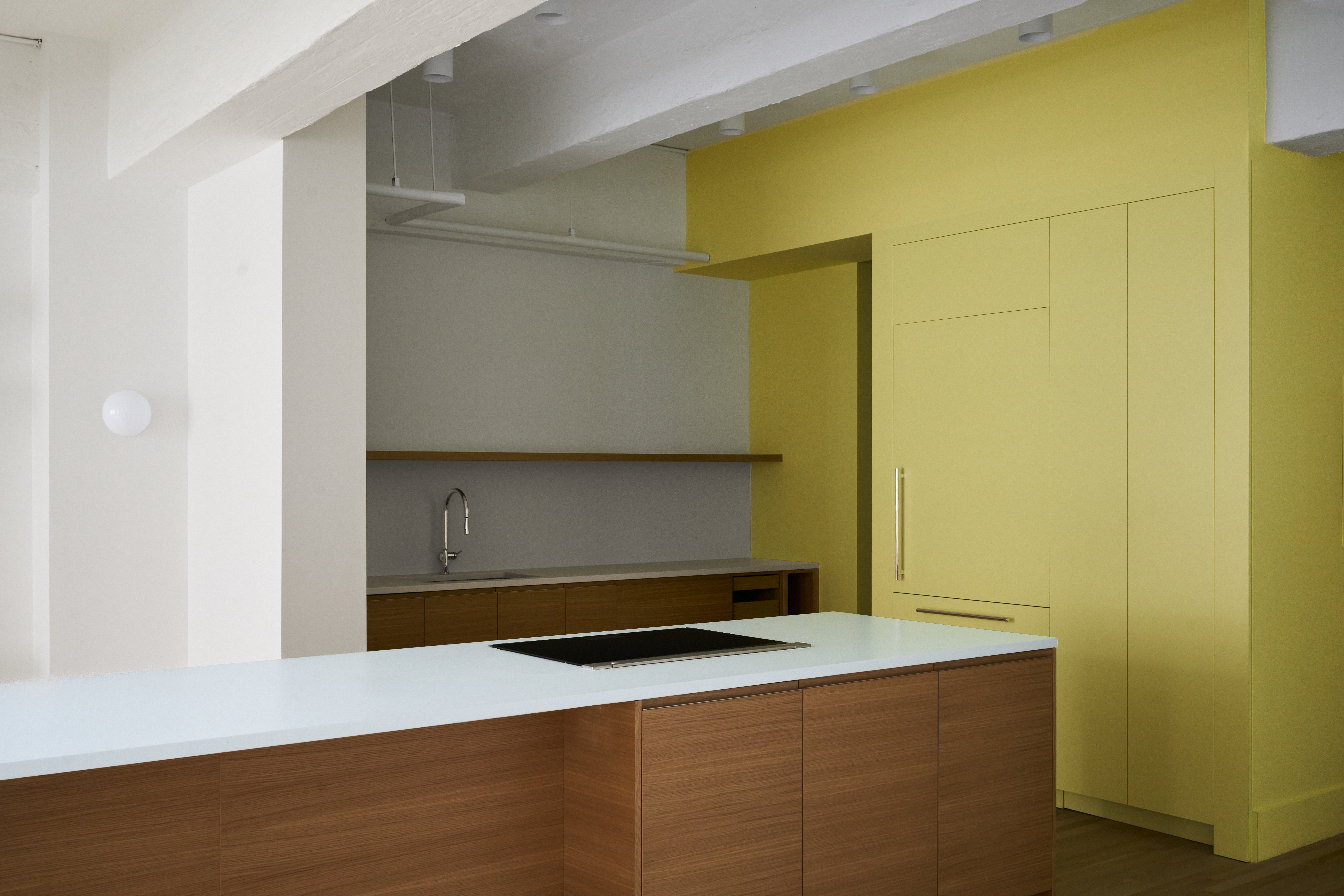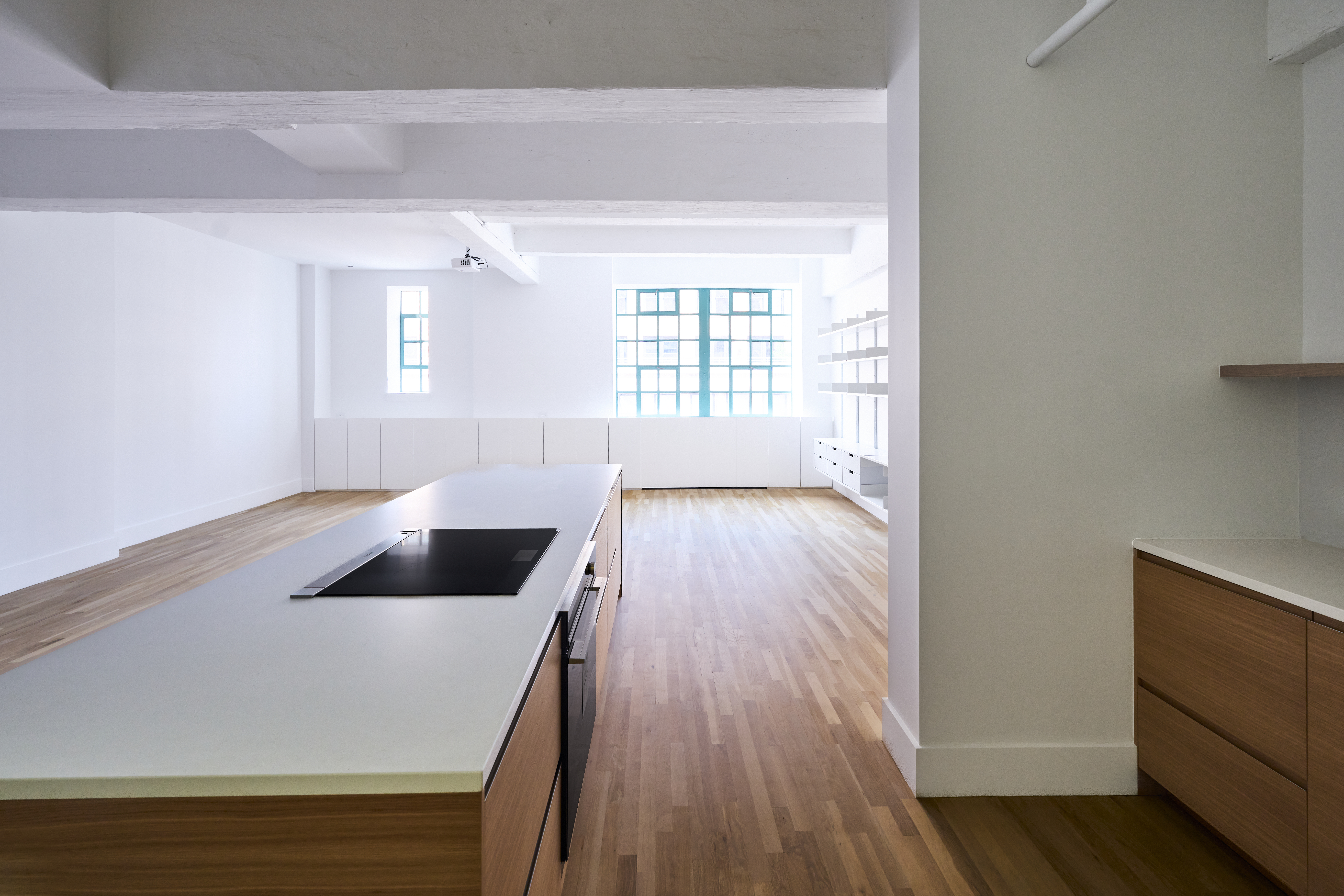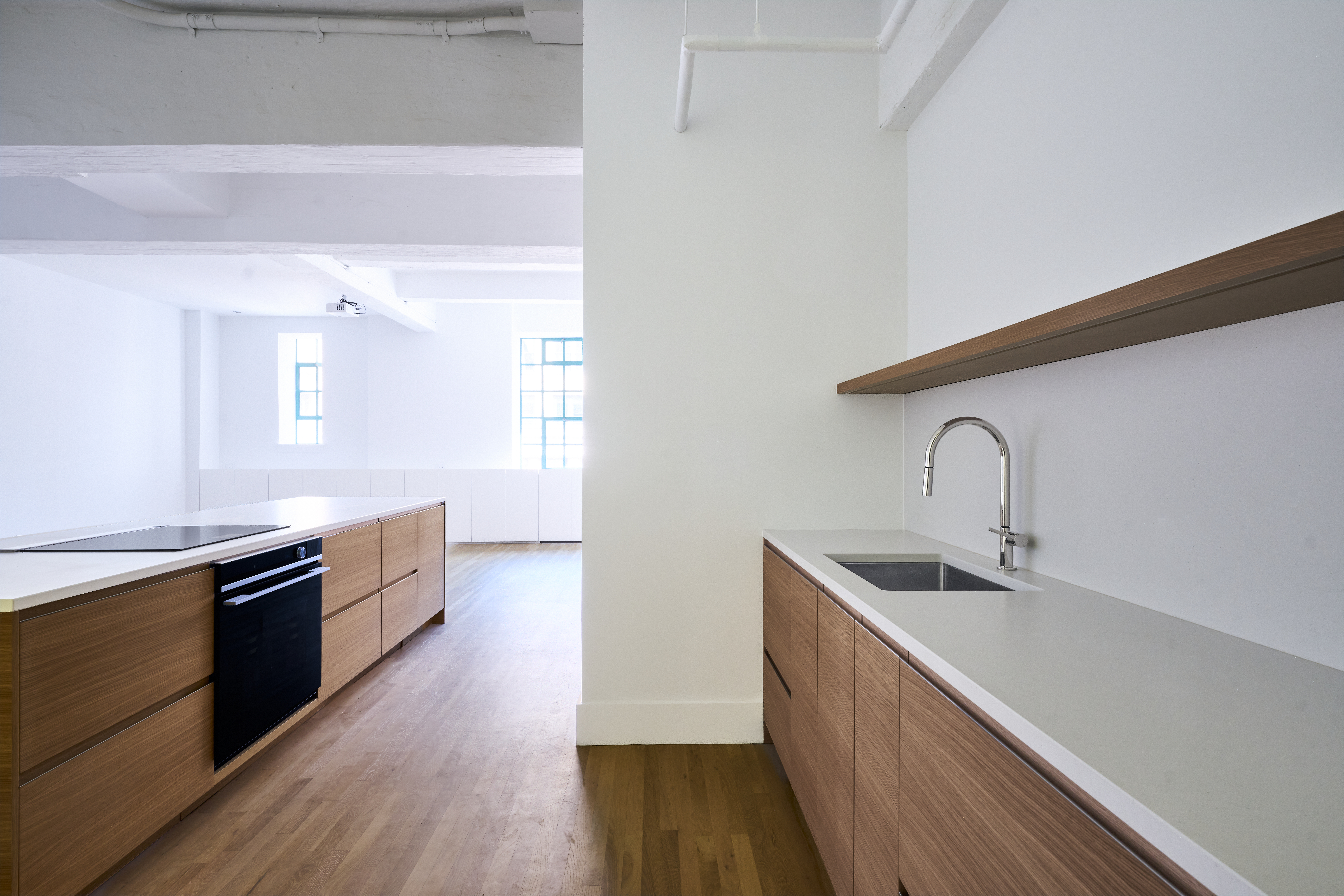 A sleek, modern culinary space that balances the industrial scale of a classic loft with refined custom cabinetry, high-end integrated appliances, and clean architectural lines.